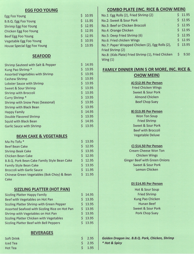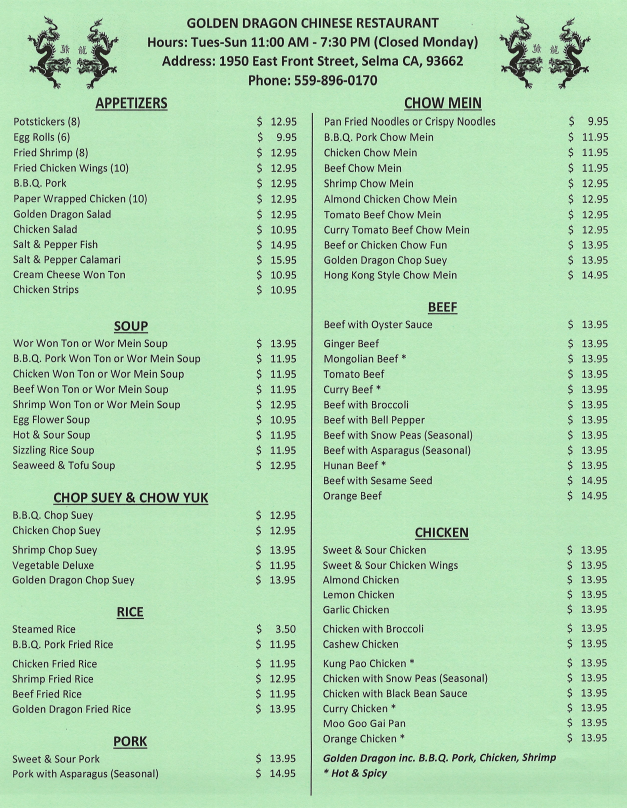 Introducing the Menu: A Golden Dragon Chinese Restaurant